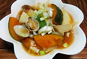그리고 바지락과 약간의 양파를 넣고 다시 진한 육수를 만들어 줍니다.