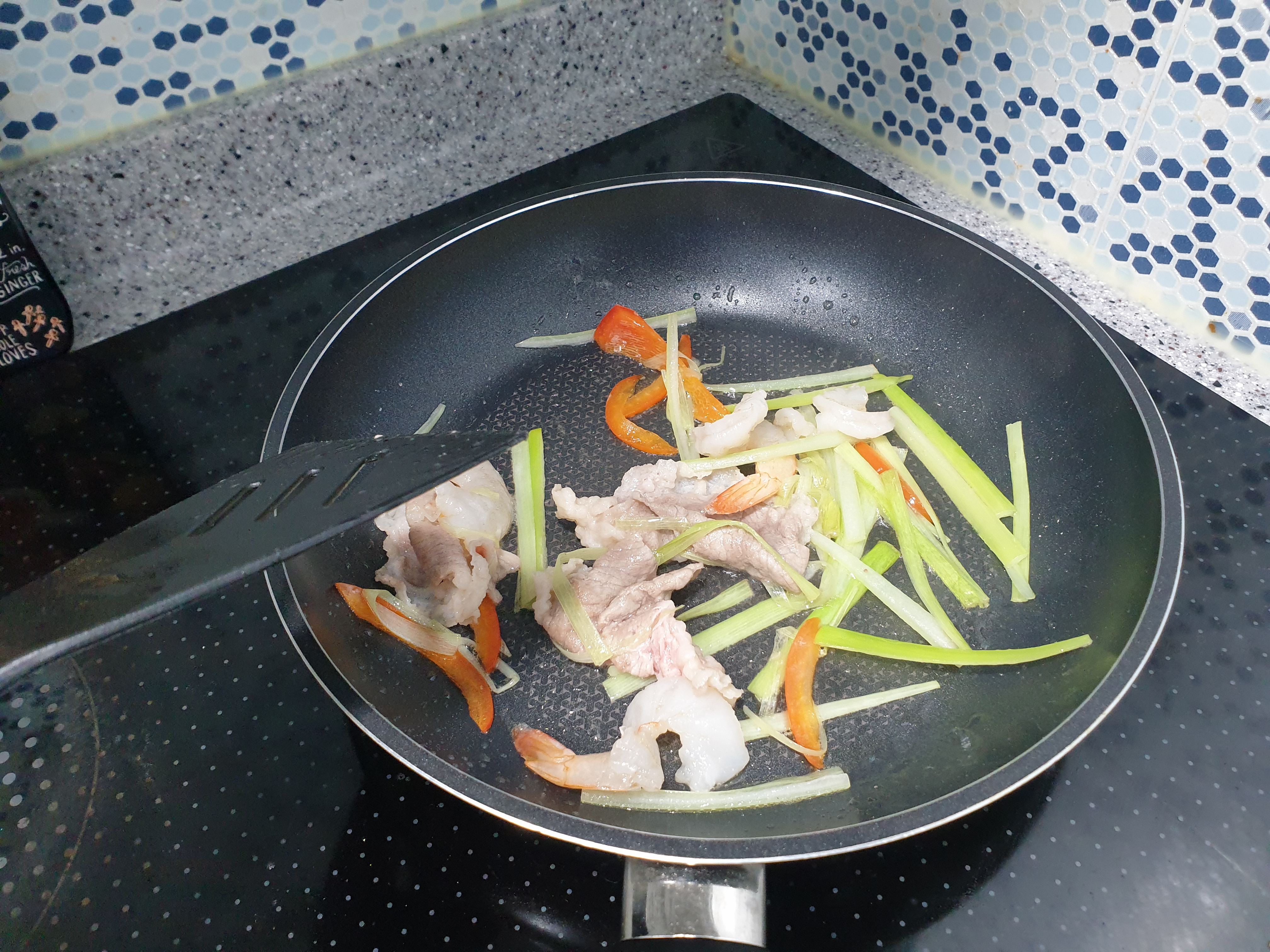 3. 각재료를 올리브오일에 볶는다.