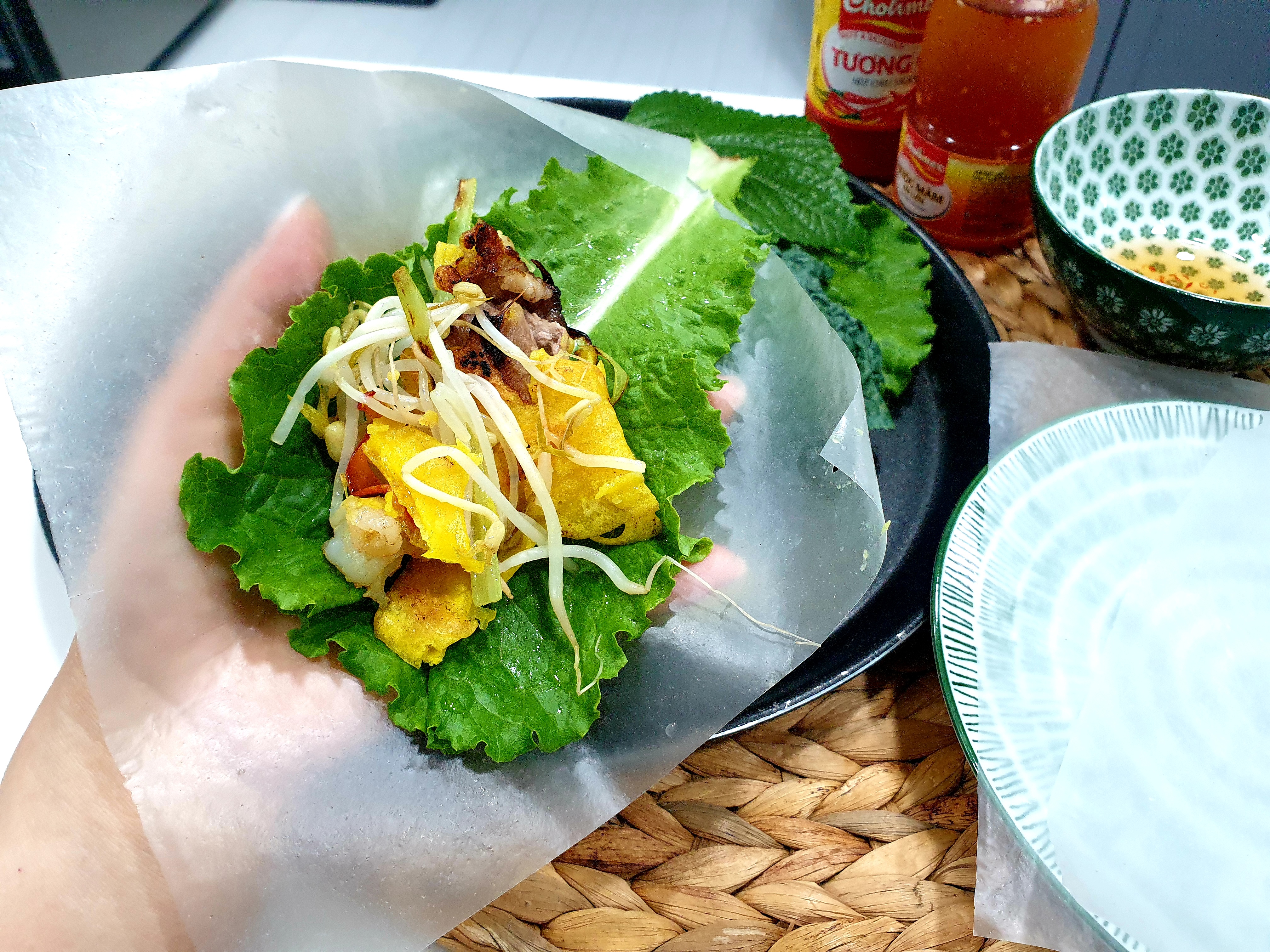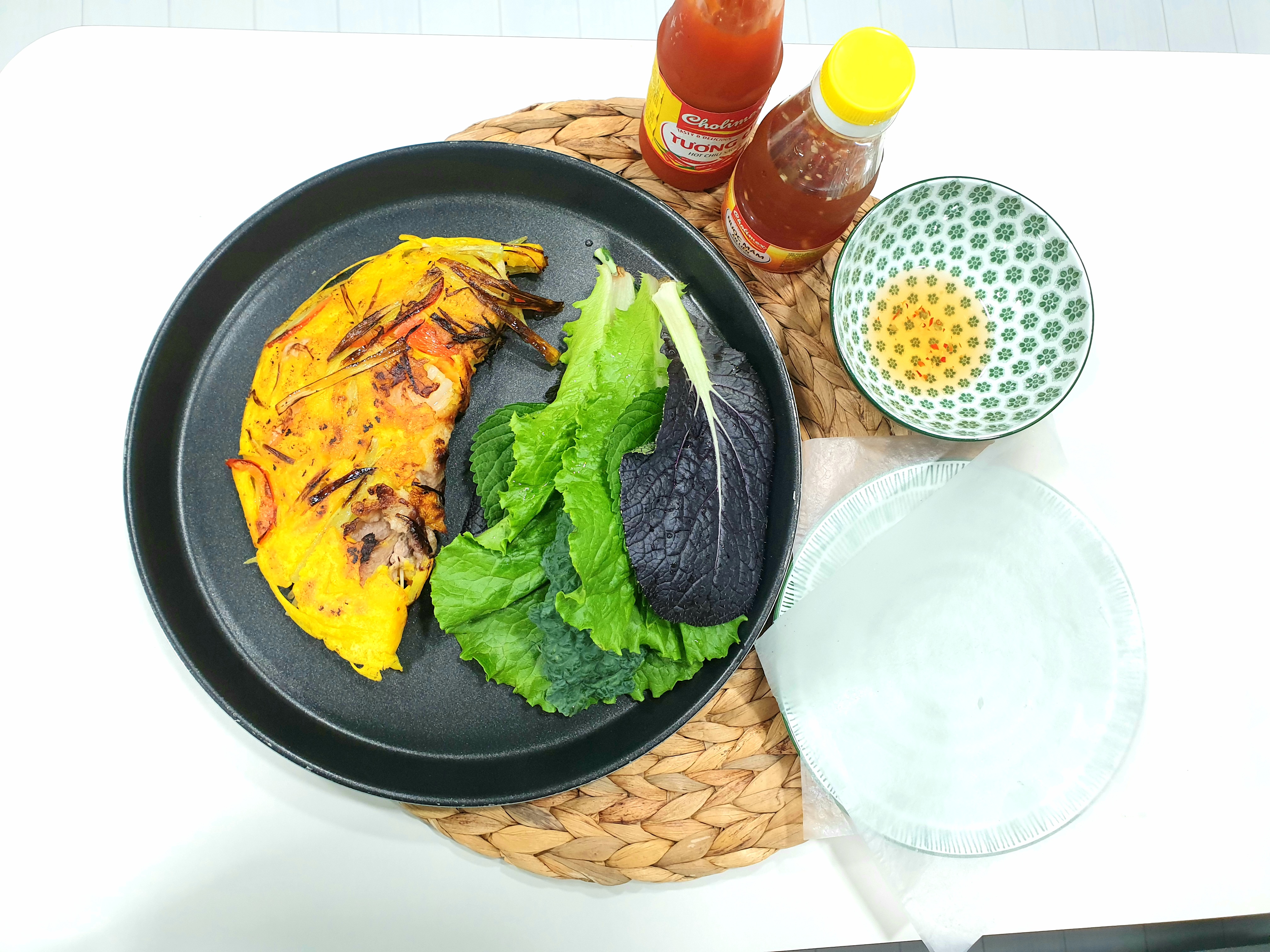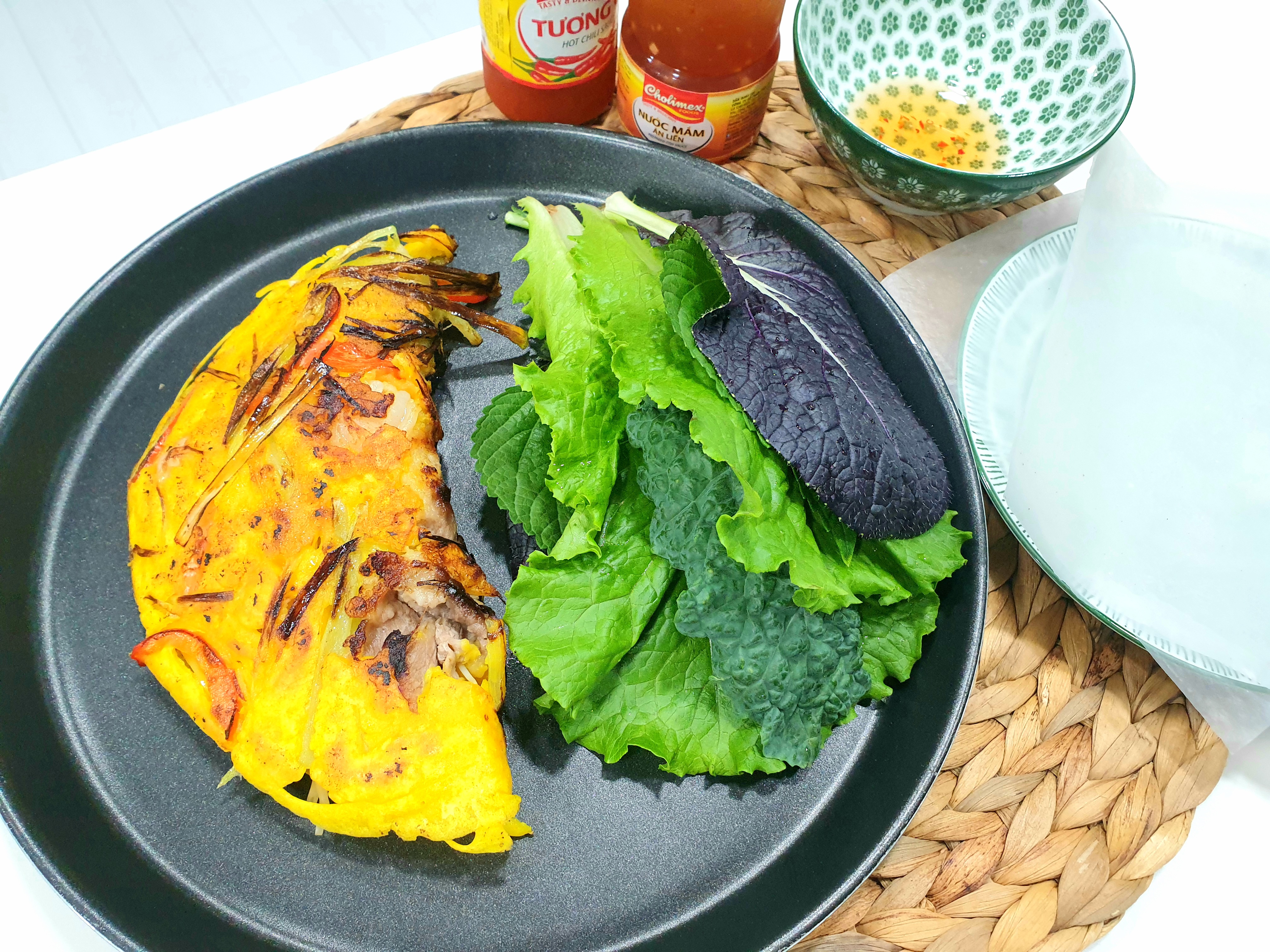완성된 반쎄오를 소스와 채소와 곁들이면 베트남 현지 못지 않는 맛을 집에서 그대로 즐길 수 있습니다.^^