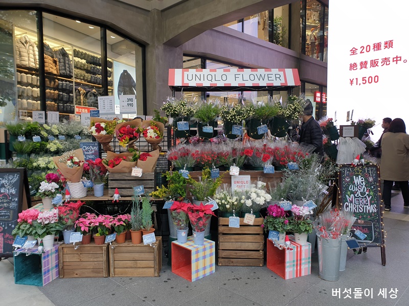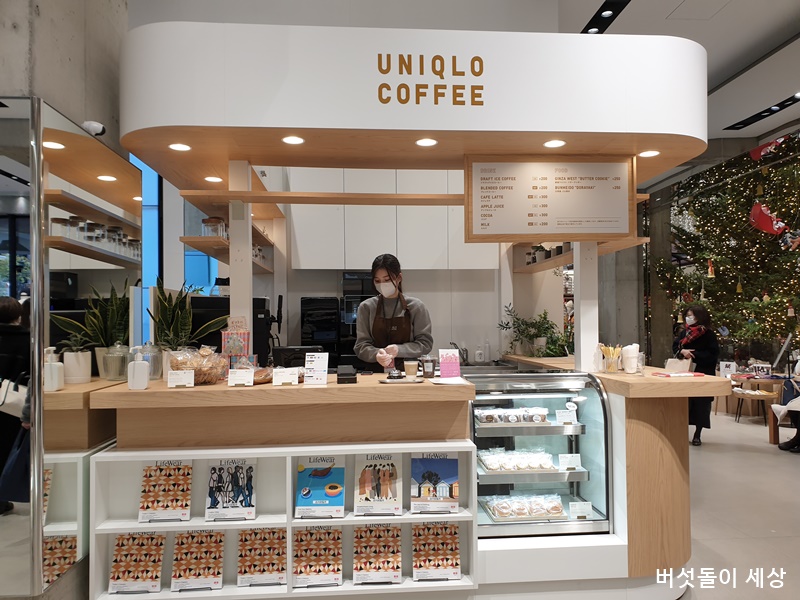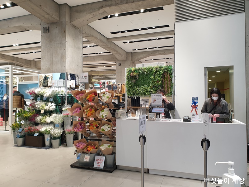 가장 흥미로운 전개가 입구 앞에 유니클로 꽃가게와 커피부스의 전개이다. 기존 유니클로 매장에서는 볼 수 없었던 꽃가게는 진심 생소했다. 안으로 들러가면 유니클로 커피 부스도 있었는데 의류매장에 커피를 들고 쇼핑해도 되는지 조금은 궁금했다.