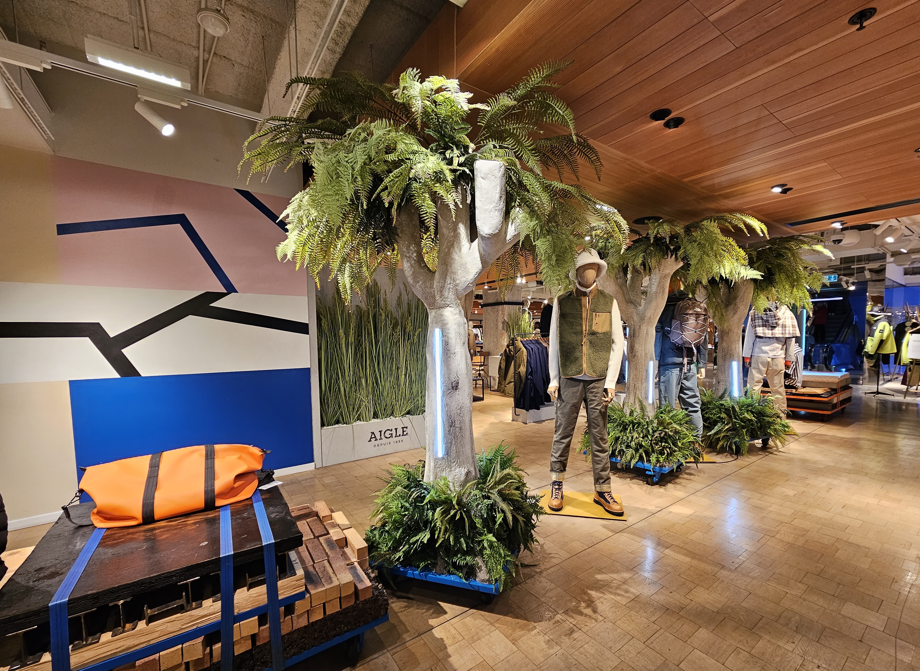 자연친화적 콘셉트만 차용한 디자인으로 플라스틱으로 만든 조화나 인조 나무를 빼곡하게 전개해 마치 자연친화적 콘셉트를 표방하는 브랜드처럼 설계된 공간이다.
