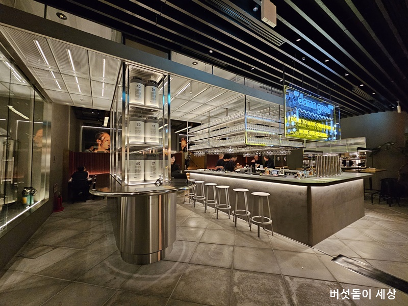 입구부터 가로로 긴 아치형 구조 안에는 싱그러운 식물전개를 비롯해 멋스러운 가구 배치가 감정적으로 포근한 느낌을 준다. 내부로 들어서면 각각의 개성 넘치는 식당들의 인테리어 디자인들은 점포를 획일적으로 구분하지 않고 오히려 북적이는 분위기를 자아내며 고객으로 하여금 머물게 하고 싶게 한다. 또한 명망 높은 셰프와 파티시에가 큐레이팅한 고품질 메뉴들이 새로운 경험 유인했다. F&B 구성 외 라이프스타일을 제안하는 상점도 둘러볼 수 있어 유익한 시간을 보낼 수 있는 공간도 마련했다.