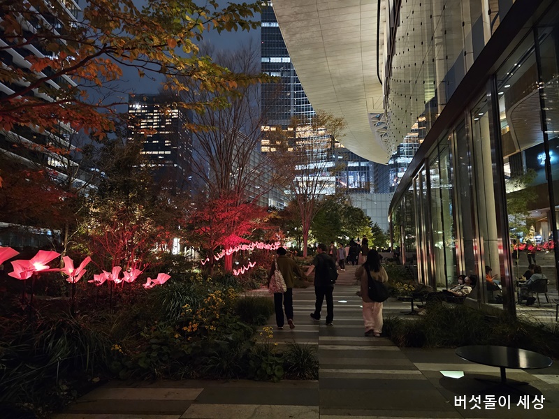 도라노몬 힐즈를 방문한 시간되는 저녁이다. 신바시역을 지나 조금 더 걸어가면 빼곡하게 들어선 고층빌딩이 시선을 압도한다. 짙은 어두운 거리를 반짝반짝 빛나는 조명들이 고층빌딩들의 외관을 더욱 아름다운 분위기를 자아냈다. 특히 방문당시 크리스마스 시즌이라서 ‘TORANOMON LIGHT ART’ 가 진행되어 빛의 예술을 제대로 즐길 수 있다. 잔디밭 광장은 마치 반딧불을 영상켓하는 light art가 펼쳐졌고 곳곳에서도 다양한 아트 조명으로 연말 이미지를 아름답게 수놓았다.