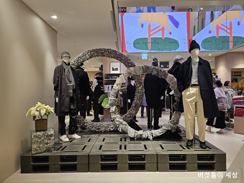 매장 곳곳에는 식물과 액자 및 오브제 등으로 스타일 및 디자인 요소를 표현하는 방법도 기존 무인양품 스타일과 다르게 전개되었다. 개인적인 의견이지만 마치 랄프로렌과 유니클로 그리고 GAP 브랜드의 장점을 적절하게 활용한 비주얼 머천다이징이라는 생각들었다.