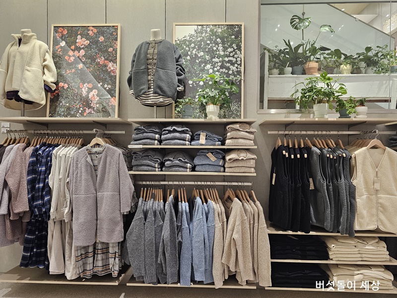 매장 곳곳에는 식물과 액자 및 오브제 등으로 스타일 및 디자인 요소를 표현하는 방법도 기존 무인양품 스타일과 다르게 전개되었다. 개인적인 의견이지만 마치 랄프로렌과 유니클로 그리고 GAP 브랜드의 장점을 적절하게 활용한 비주얼 머천다이징이라는 생각들었다.