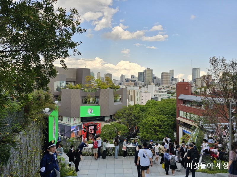 하라카도의 랜드마크로 자리잡은 7층 옥상정원입니다. 오픈 당일이라 사람들로 북적입니다. 그래도 시원한 하라주쿠 경관은 너무 매력적입니다. 건너편 오모카도 대형 전광판이 하라주쿠 거리를 더욱 화려하게 조명해주고 있어요. 밤에 오면 더욱 멋진 풍경을 체험할 수 있습니다.