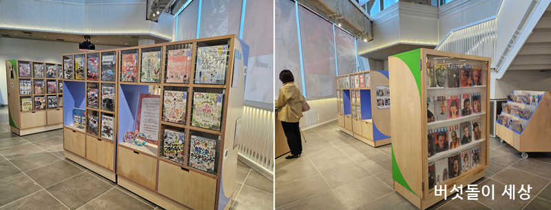 2층은 일본 잡지 역사를 한눈에 볼 수 있어요. ‘잡지를 더 가까이에’라는 슬로건처럼 젊은 층이 종이 잡지의 매력을 전달하는 장소가 됩니다. 잡지는 현장에서만 볼 수 있어요.