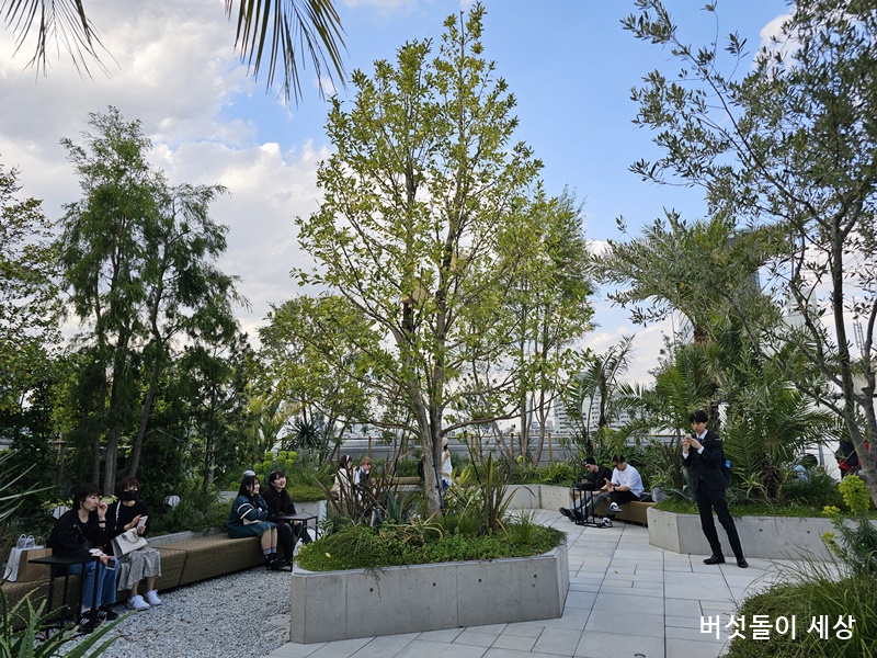 옥상정원의 조경이 멋지다보니 도심 속에서도 힐링되는 듯 마음도 편하더라고요. 유리벽을 통해 비행기가 지나가는 진귀한 풍경은 지금도 미소가 나올 만큼 좋은 기억입니다.