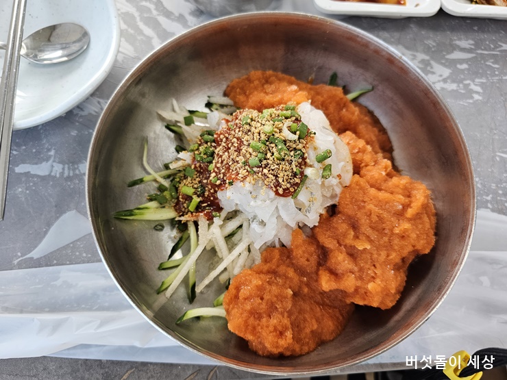 2박 3일 출장 동안 부산 기장 연화리 근처 숙소를 잡았습니다. 숙소도 뷰 맛집으로 예약해 3일 동안 눈이 즐겁고 휴식의 방이 되었습니다. 연화리에 머무는 기간에 맛있게 즐긴 음식은 물회입니다. ‘진품물회’ 맛집에서 맛본 물회는 서울에서 먹었던 물회보다 맛과 식감이 매우 다르더군요. 진한 육수에 아삭한 채소와 회와의 조합이 자꾸 생각나게 합니다.