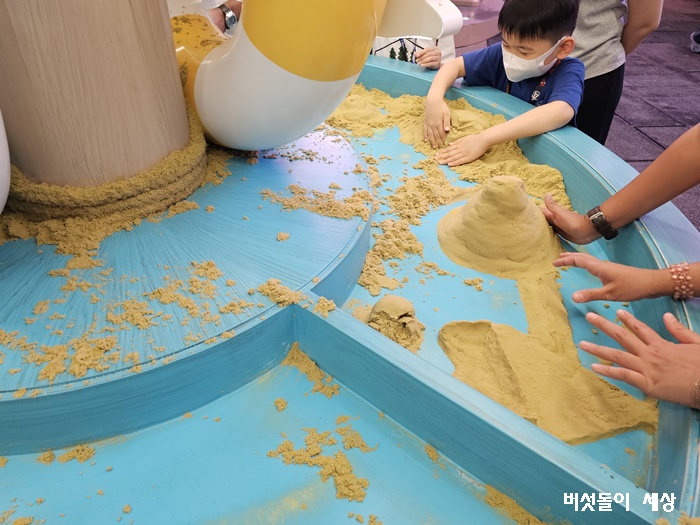 여기에 파라솔 부스에서 모래 체험도 아이들이 흥미롭게 즐깁니다.