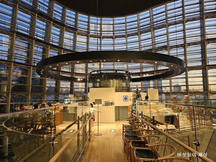 낮에는 아오야마 공원과 주변 녹지가 한눈에 들어오고, 별도의 조경 없이도 충분한 풍경을 즐길 수 있다. 카페 자체는 과하지 않지만, 위치와 공간이 모든 것을 완성시킨다. 때로는 전시장보다 더 강렬한 기억으로 남을 정도다.