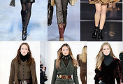 지난 시즌 밀리터리가 파워풀했다면 가을에는 소프트한 밀리터리가 유틸리티( 실용적이며 포켓, 스냅 지퍼 등 디테일이 가미된 룩)를 표현한다. 밀리터리 룩을 대표하는 카키색은 ‘ 새로운 블랙’ 이라고 불릴 만큼 사랑받는 트렌드 컬러가 되고 있으며 베이식함을 만족시킬 만한 매력적인 컬러이다. 지난 시즌에는 어깨를 강조하는 파워숄더나 견장으로 딱딱한 이미지를 주었다면 가을 시즌부터는 부드러우면서 내추럴함을 강조한 소프트한 밀리터리 룩이 유행될 것이다. 특히 가을이면 어김없이 등장하는 가죽 아이템과 레이어드하면 캐주얼하게 밀리터리룩을 즐길 수 있으며 재킷에 레이스나 시폰 등 로맨틱한 아이템과 레이어드하면 여성스러움을 동시에 보여 줄 수 있다. 이때 워커부츠나 부티, 롱부츠로 스타일을 돋보이게 할 수 있겠다.
