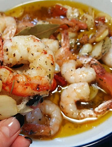 집에서 스페인 전통 새우요리 감바스 알 아히요 요리를 처음 만들어 보았다. 만드는 방법도 간단하고 복잡한 재료 손질도 없어 집에서 맛있게 즐길 수 있는 요리이다. 자취하는 사람도 부담없이 만들 수 있는 방법이다. 집에서 즐기는 스페인요리 감바스 알 아히요 만들기 스페인어로 감바스(Gambas)는 새우, 아히요(Ajillo)는 마늘을 뜻한다. 올리브유의 느끼함을 마늘과 페페론치노를 넣어 살짝 매콤하게 즐길 수 있는 요리로 술안주나 담백한 빵과 곁들이면 식사로도 손색없는 매력적인 요리가 되겠다. 재료: 새우(중새우 이상의 손질한 생새우나 칵테일 새우), 올리브유 150ml, 월계수잎 4~5개, 페페론치노 6~8개, 토마토 1개, 마늘 10개, 각 허브(건 바질, 로즈마리, 파슬리) 후춧가루, 약간의 소금 준..